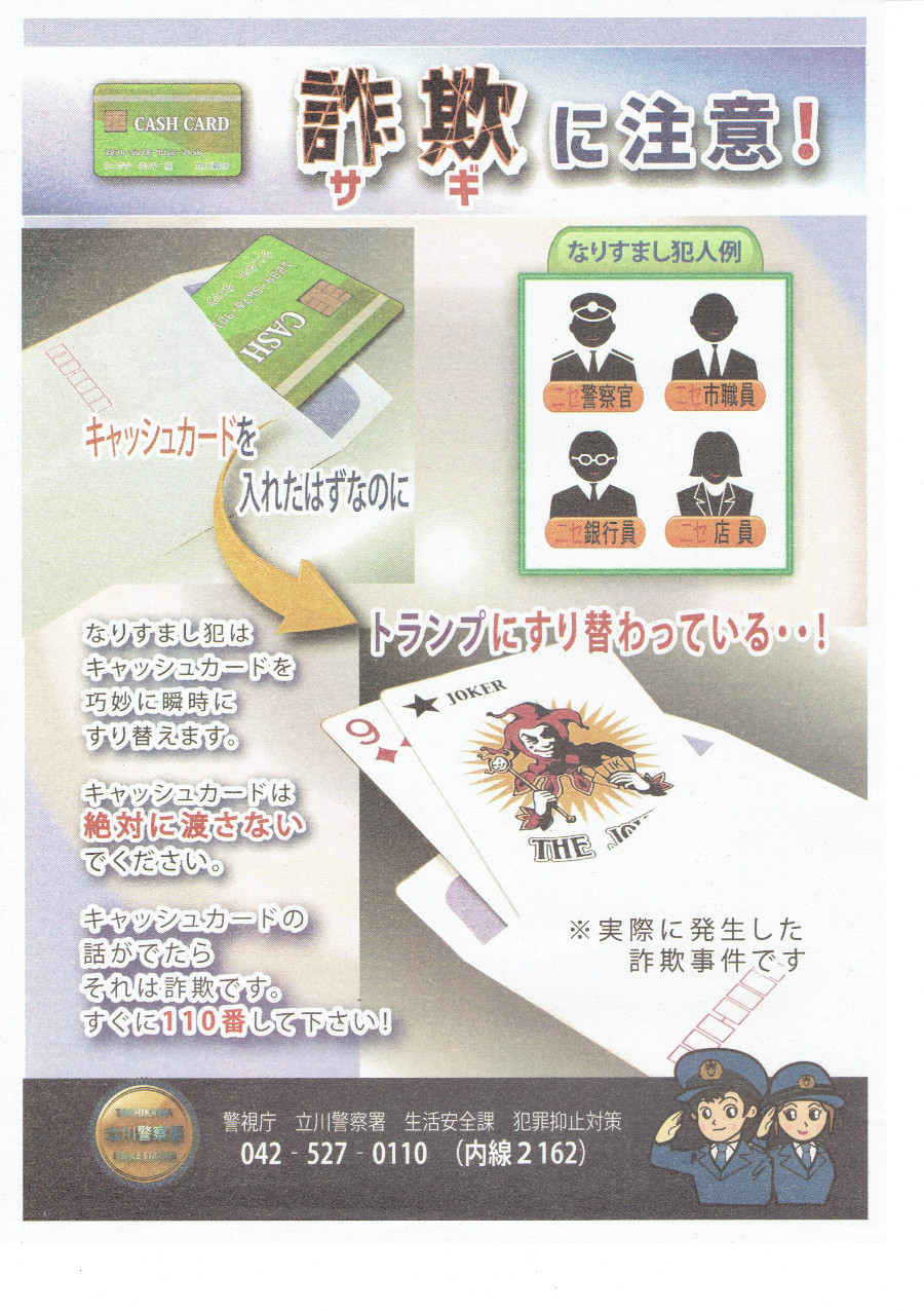 キュッシュカード詐欺に注意! 警視庁 立川警察署 生活安全課