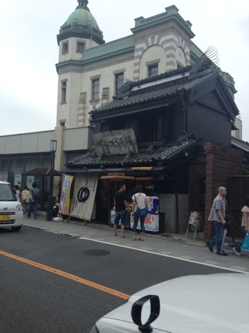 レトロな街並み 銀行もレトロチック 店のマスコット?